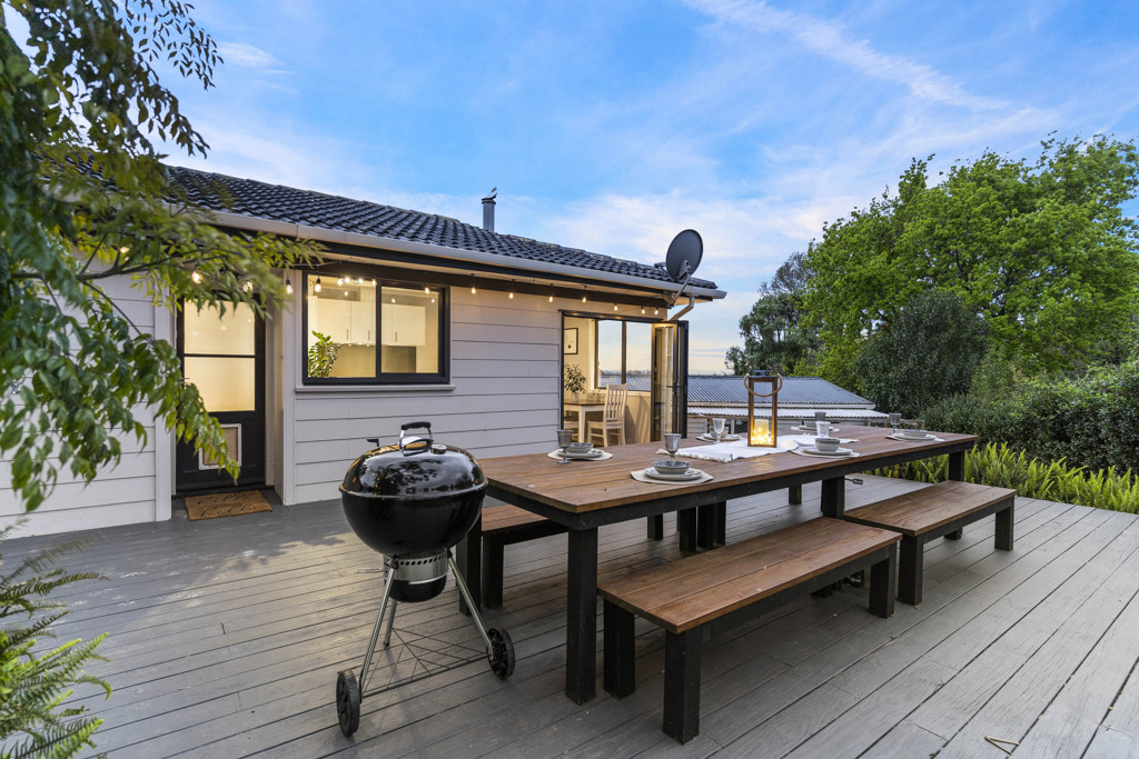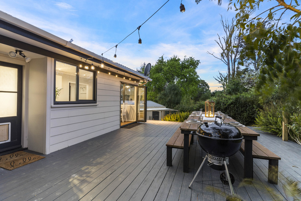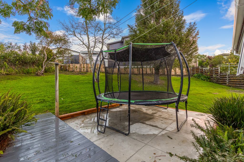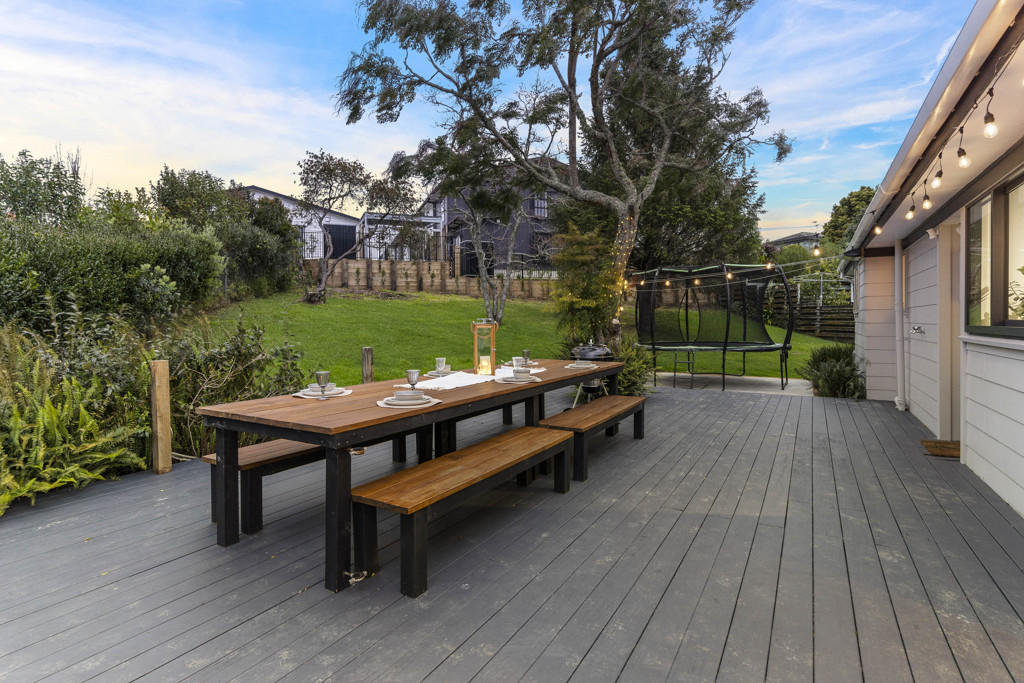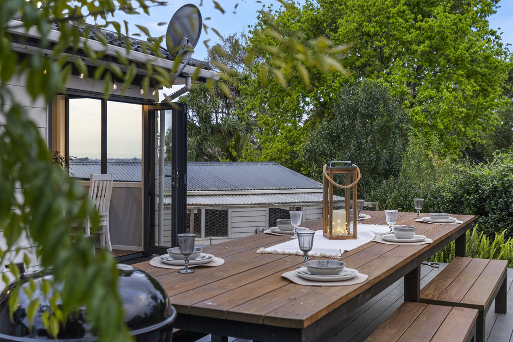 Currently fitted with a custom-built table that seats 10 (you'll need to ask if they'll let you keep it!) and a dedicated trampoline landing (or perhaps a spa-pool?), it's an outdoor haven.